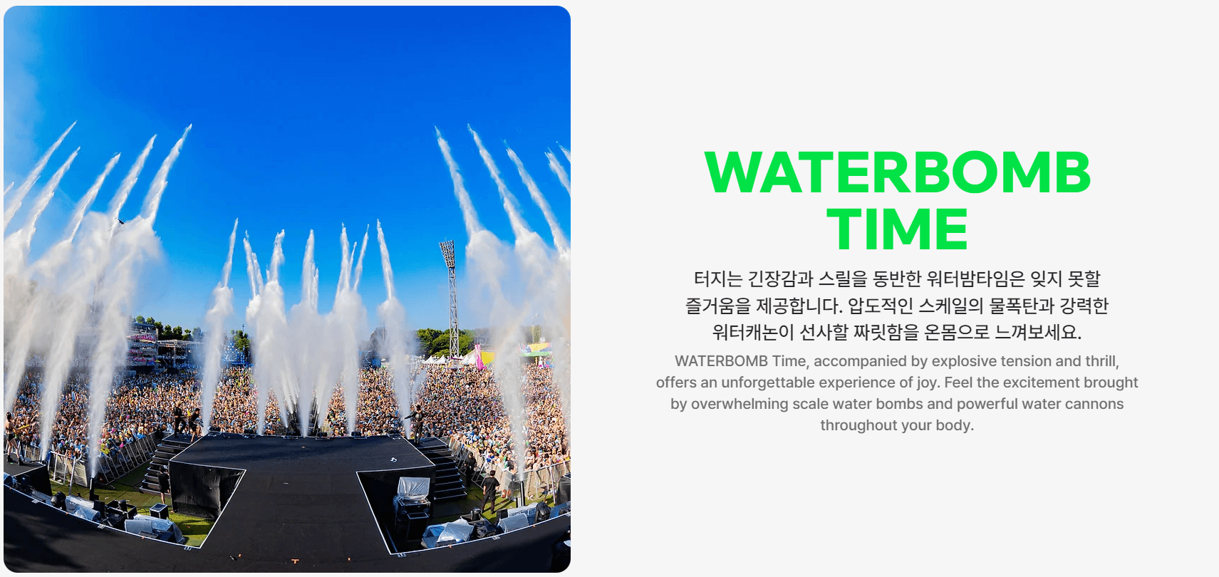 2015년 부터 개최되어 많은 인기를 끌고 있는 워터밤 페스티벌이 올해 7월 개최됩니다. 얼마전 라인업까지 공개되면서 큰 관심을 끌고 있는 워터밤 2024 페스티벌에 대해 지금부터 자세히 알아보도록 하겠습니다.