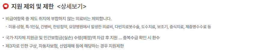 - 지원항목 : 비급여 및 본인부담상한제를 적용 받지 않는 급여