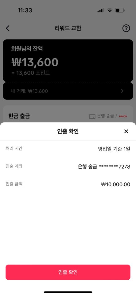 그런데다가 받은 포인트는 바로 현금으로 바꿀 수 있다는 점이 가장 좋았어요! 현금으로 바꾸는 방법은 아래에서 자세히 소개하도록 하겠습니다.