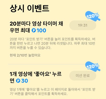 캐시*크 처럼 어떤 미션을 완료했을 때 포인트로 지급한다고 이해하시면 될 것 같습니다~!